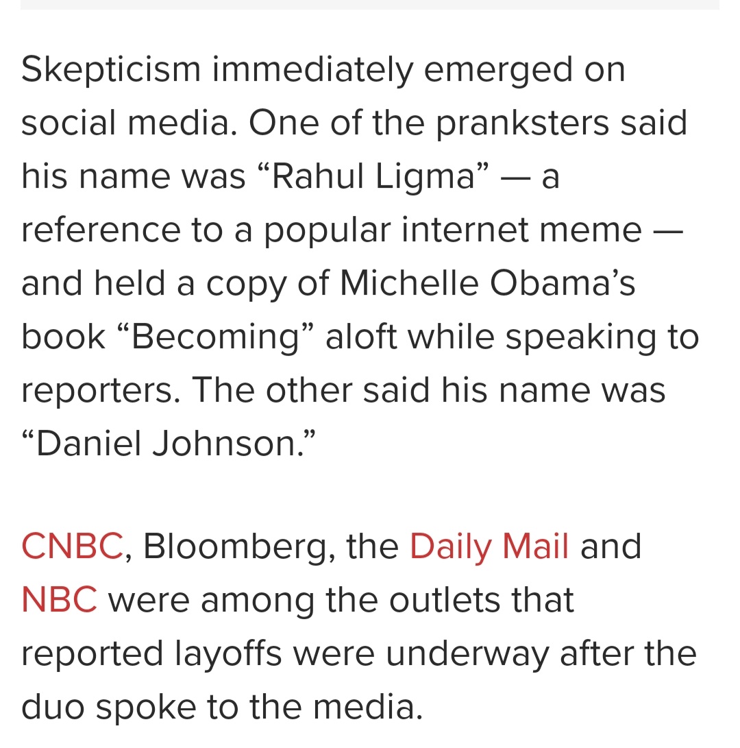 | Fake Laid Off Twitter Employees Rahul Ligma And Daniel Johnson Punked Cnbc Hard Facepalm Article |